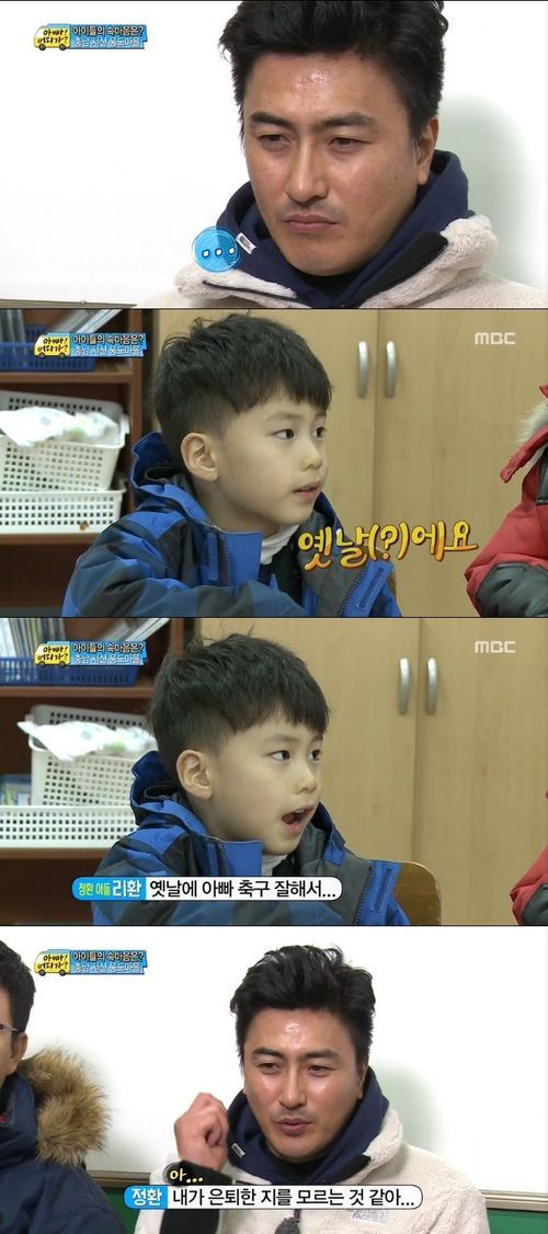 리환은 2일 오후 방송된 MBC 예능프로그램 '일밤-아빠!어디가?'(이하 '아빠어디가')에서 "아빠가 어떨 때 제일 멋지냐"라고 묻는 말에 "축구할 때가 멋있다"라고 말했다.