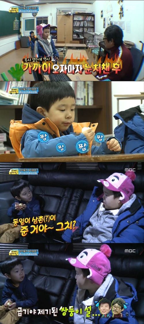 그러나 성동일은 아이들에게 호통을 치며 위기를 넘겼고, 후는 사과를 하며 선생님에 대한 의심을 거뒀다. 두 아이들은 무사히 황금알을 낳는 닭이 낳은 황금알을 받고 숙소로 돌아오게 됐다. 민율은 "이거 동일이 삼촌이 준 것 아니냐"며 아니라고 말하는 윤후의 말에 "쌍둥이 인가봐"라고 말해 웃음을 자아냈다.