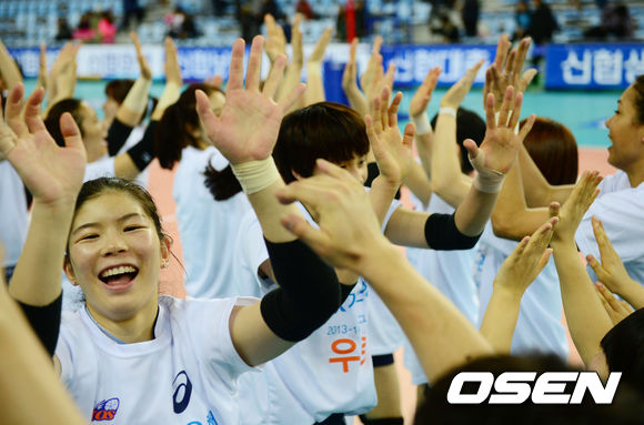 IBK기업은행은 2일 인천계양체육관에서 열린 NH농협 2013-2014시즌 V리그 여자부 흥국생명과 경기서 세트스코어 3-0(25-19, 25-12, 25-16) 승리를 거두고 정규리그 우승을 확정지었다.