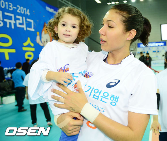 IBK기업은행 카리나가 자신의 딸과 우승의 기쁨을 나누고 있다./ rumi@osen.co.kr