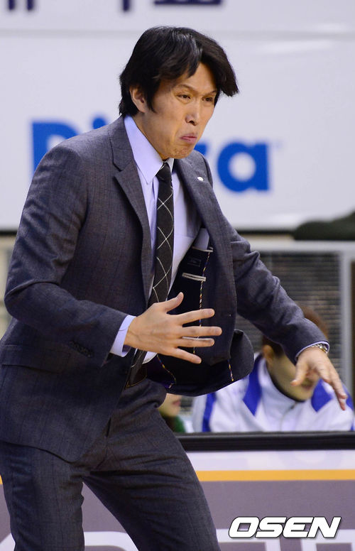 2일 오후 춘천호반체육관에서 열린 '우리은행 2013-2014 여자프로농구' 춘천 우리은행과 안산 신한은행의 경기 1쿼터 우리은행 위성우 감독이 선수들에게 지시를 하고 있다.