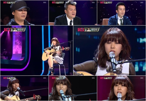 'K팝스타3' 실력파 참가자 권진아가 힙합곡 '씨스루'를 어쿠스틱버전으로 완벽 재해석해 톱8에 1위로 안착했다.