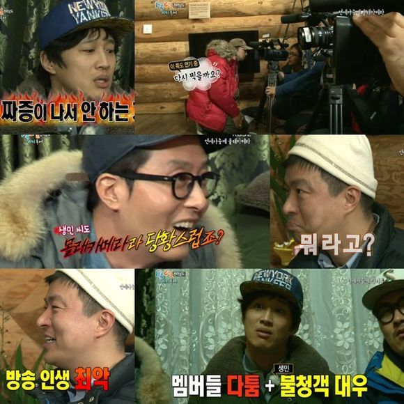 또한 인터뷰 중간 쉬는 시간에도 멤버들 간의 다툼은 계속됐다. 데프콘은 김종민에게 “쓸데 없는 얘기 좀 하지마”라고 했고 김주혁은 “나이 얘기 좀 그만해라”라고 김종민을 몰아갔다. 유호진 PD도 한몫 거들었다. 유호진 PD는 몰래카메라 상황을 모르는 선배인 ‘연예가중계’ PD에게 다가가 “다시 찍을까요?”라고 연기했다. 멤버들의 언성이 높아졌고 분위기는 점점 험악해져갔다.