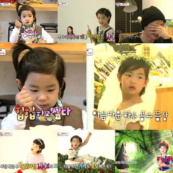 가수 아빠와 배우 엄마의 딸답게 하루는 방송에서 가수와 배우의 끼를 자연스럽게 골고루 보여주고 있어 이 아이가 미래에 어떤 사람이 될지 기대된다.