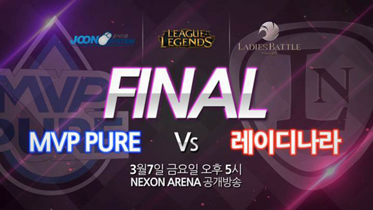 결승전에는 두 달여 간 치열한 경쟁을 통해 최종 결승 진출권을 얻은 팀 ‘레이디 나라’와 ‘MVP PURE’가 상금 500만원을 두고 격전을 벌이게 된다. 또한 인기 프로게임단 IM(Incredible Miracle)이 펼치는 이벤트 매치와 복한규, 정민성 등 전 스타급 프로게이머 출신의 중계 등 풍성한 볼거리가 마련될 예정이다.