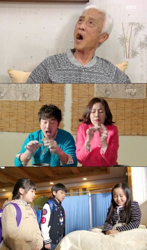 이날 동석과 동희(옥택연 분)의 할아버지 강기수(오현경 분)은 과자를 숨겨 놓고 먹으며 귀여운(?) 면모를 드러냈다. 기수는 다친 허리 때문에 10년 넘게 자리를 보전하고 있는 상황. 하루에도 몇번 씩 손주들과 증손주들의 이름을 불러대는 인물이다. 이날은 자신에게 버릇 없게 행동한 동희의 사과를 받아냈는데, 동희가 작은 목소리로 "미안하다"고 하자 "안 들린다"며 더 큰 목소리로 사과를 받아내 웃음을 선사했다.