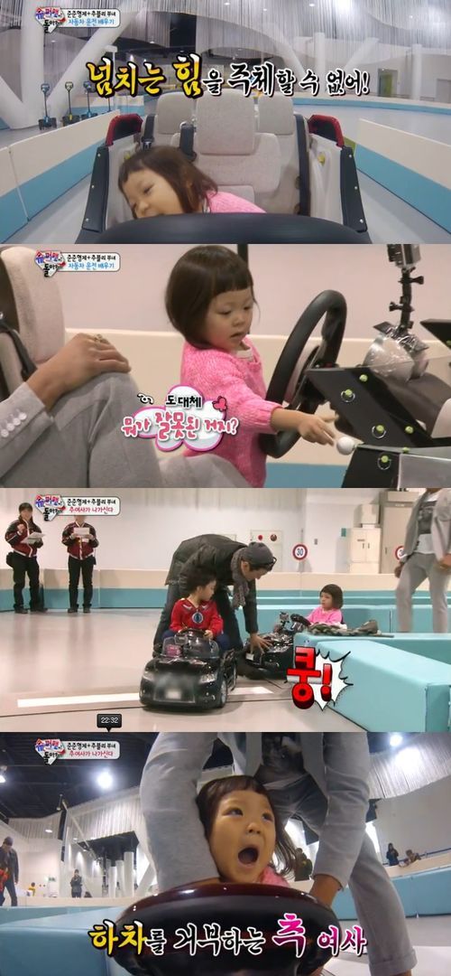 추사랑은 계속 운전하고 싶은지 자동차가 멈췄지만 하차를 거부했고 아빠의 제재에 결국 울음을 터뜨렸다.