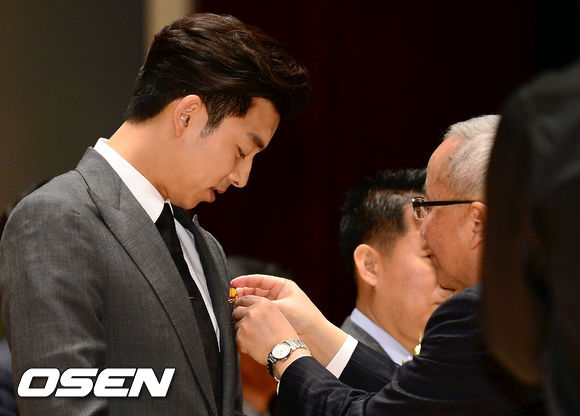 3일 오전 서울 코엑스 오디토리움에서 진행된 '제 48회 납세자의 날' 기념식에서 모범납세자로 선정된 공유가 표창을 받고 있다.