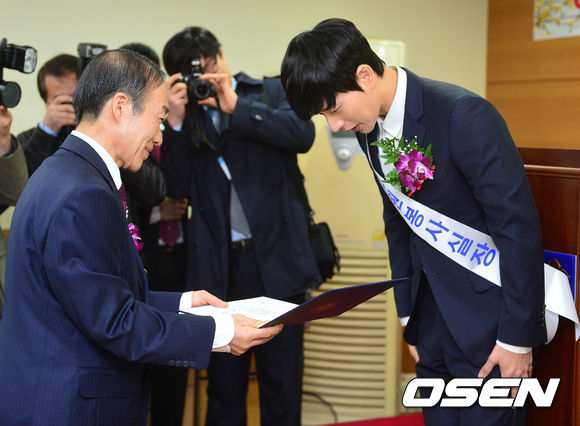 박해진은 용산 세무서에서 열리는 납세자의 날 기념식에 참석해 일일 명예 민원 봉사실장 위촉장을 수여 받고, 세무서 내 민원센터로 이동해 미소로 구민들을 맞이한다. /dreamer@osen.co.kr