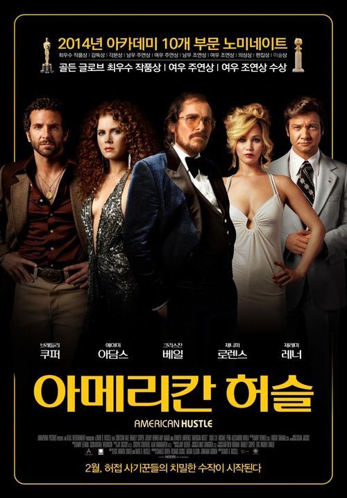 '아메리칸 허슬'이 FBI 요원으로 스카우트 된 천재 사기꾼들의 사기극으로 담아낸 미국 사회에 대한 풍자는 노예로 팔려가 12년간 노예 생활을 해야 했던 흑인 음악가의 이야기의 무게감을 뛰어넘지 못했다. 둘 다 실화를 바탕으로 만들었으나 아카데미는 '노예 12년'에 각색상까지 수여하며 찬가를 보냈다.