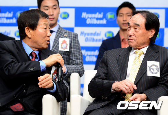 경남 이차만, 성남 박종환 감독이 출사표를 던지고 있다.
