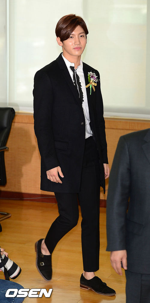 동방신기 최강창민이 일일 명예 민원봉사실장 임명식에서 무대 앞으로 입장하고 있다.