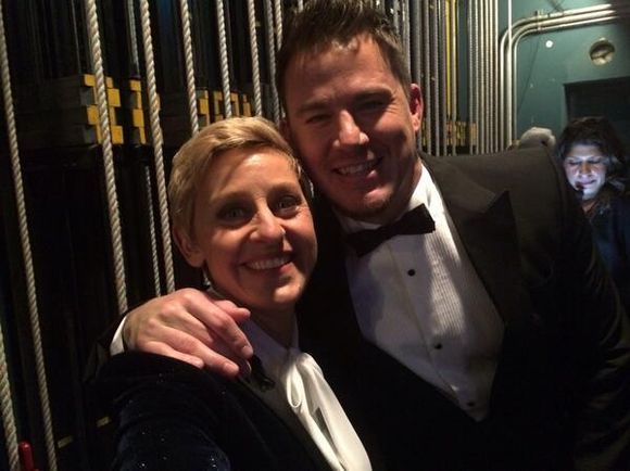 토크쇼 진행자 엘렌 드제너러스가 아카데미 시상식에서 채닝 테이텀과 찍은 인증샷을 공개했다.