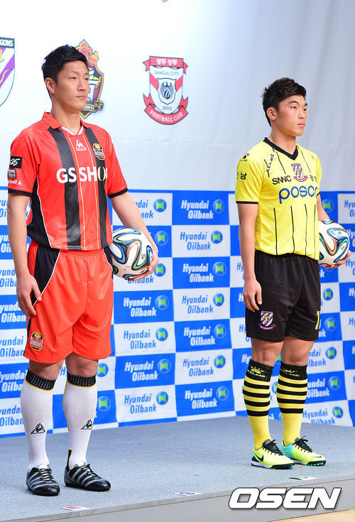 FC서울 김진규와 전남 이종호가 유니폼을 입고 포토타임을 갖고 있다.