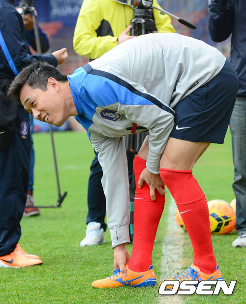박주영이 훈련에 앞서 축구화 끈을 묶으며 미소를 짓고 있다./ ajyoung@osen.co.kr