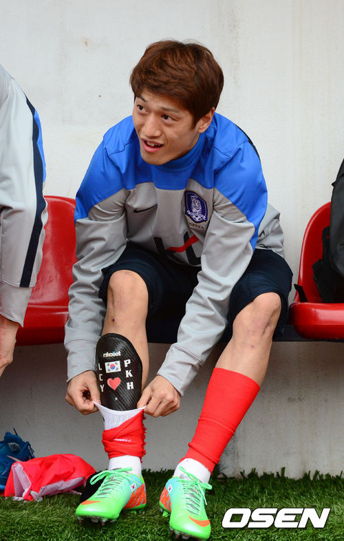이청용이 훈련에 앞서 보호대 도구를 챙기고 있다./ ajyoung@osen.co.kr