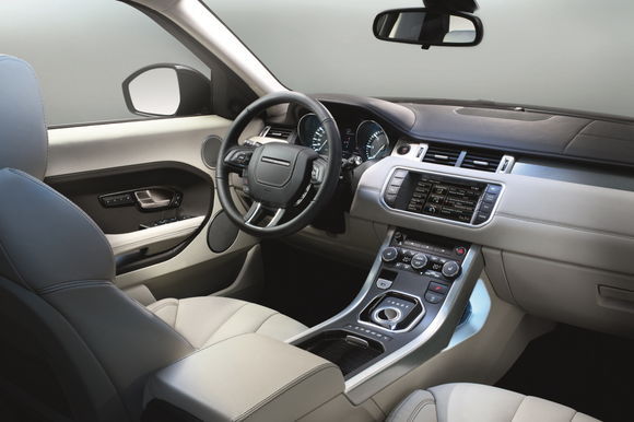 '레인지로버 이보크'의 인테리어 역시 특유의 고급스러움과 간결함이 느껴진다. 전방 및 주변 시야를 확보할 수 있게 낮게 배치된 운전석, 다기능 열선 가죽 스티어링 휠, 최고급 가죽으로 만들어진 시트, 인테리어 무드 라이팅으로 장식된 내부 등은 스포티하면서 세련된 분위기를 연출한다.