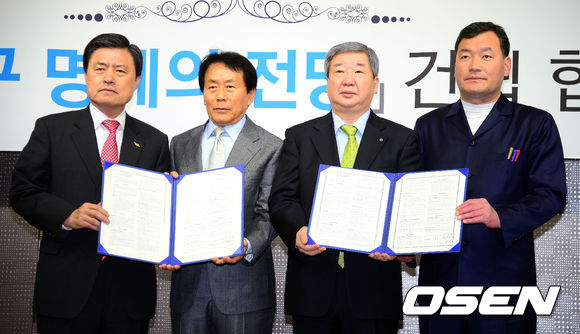 4일 오전 서울 도곡동 KBO 야구회관 7층 브리핑룸에서 '한국야구 명예의 전당'(이하 명예의 전당) 건립 협약식 행사가 열렸다.