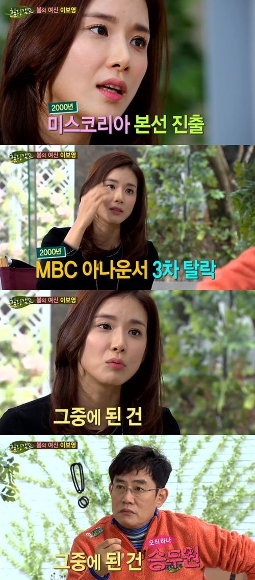 또 이보영은 "미스코리아는 출전 경력이 있으면 취직이 잘 된다는 말에 나갔다. 서울은 경쟁이 너무 세서 미스 대전 충남으로 출전했는데, 탈락했다"고 말했다.