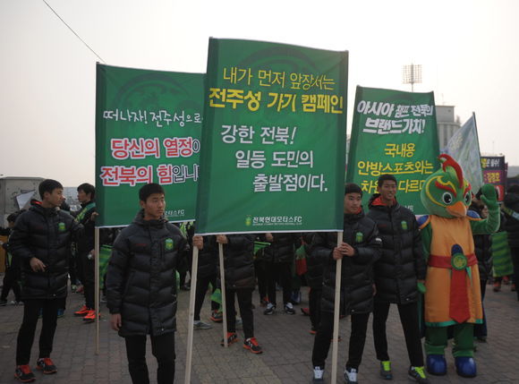 지난달 26일 AFC 챔피언스리그 1차전 일본 요코하마와의 경기에서 3대0 대승을 이끌며 ‘스페셜 닥공’을 선보인 전북은 달아오른 전북지역의 축구열기를 한층 끌어 올리기 위해 거리로 나선다.