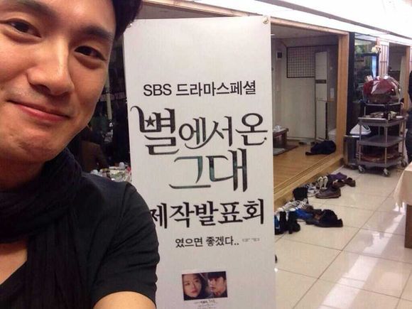오상진은 4일 자신의 페이스북을 통해 ‘별에서 온 그대’ 종방연 현장에서 찍은 사진을 게재했다.