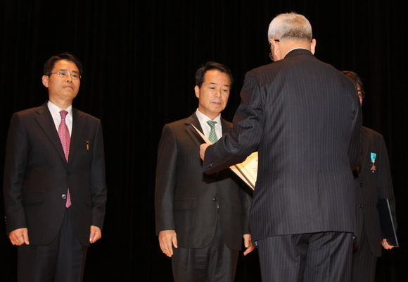 ‘납세자의 날’ 기념식에서 산업포장을 수상한 혼다코리아 정우영 대표(왼쪽에서 두 번째). /혼다코리아 제공.