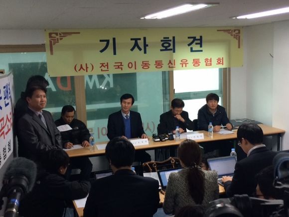 전국 휴대폰 대리점 및 판매점 상인들의 연합인 (사)전국이동통신유통협회(KMDA)는 4일 오후 5시 서울시 마포구 구수동에 있는 협회 사무실에서 기자회견을 갖고, 관리 당국의 영업정지 방침에 대한 반대 입장을 밝혔다.