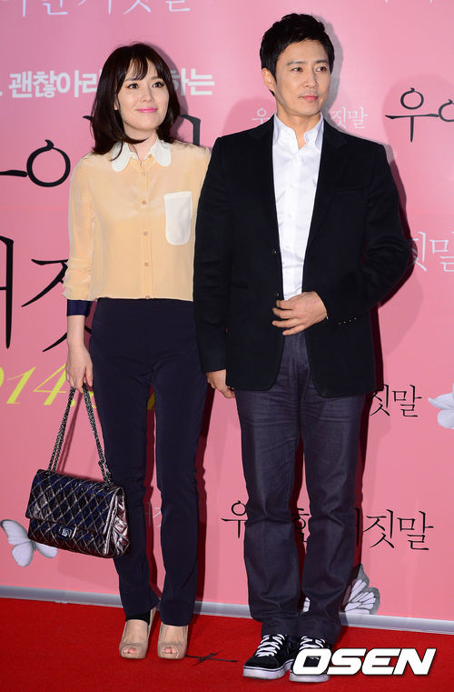 4일 오후 서울 성동구 CGV 왕십리에서 열린 영화 '우아한 거짓말' VIP 시사회에 참석한 하희라, 최수종 부부가 포토타임을 갖고 있다.
