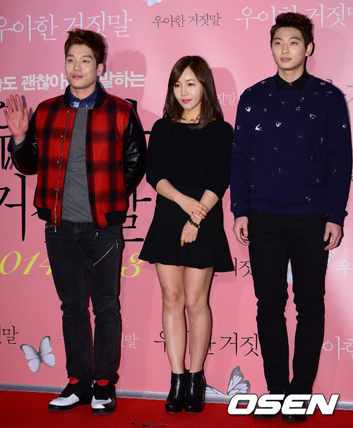 4일 오후 서울 성동구 CGV 왕십리에서 열린 영화 '우아한 거짓말' VIP 시사회에 참석한 이창민, 임정희, 정진운이 포토타임을 갖고 있다.