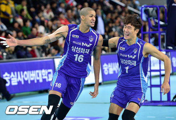 삼성화재는 4일 대전 충무체육관에서 열린 NH농협 2013-2014 V-리그 남자부 우리카드와의 경기에서 세트 스코어 3-1(25-16 25-20 23-25 25-23)로 승리했다.
