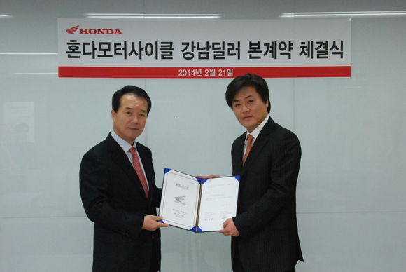 혼다코리아는 자사의 모터사이클 부문 강남 공식딜러의 새로운 사업자와 지난 2월 21일 딜러 계약을 체결했다고 3월 5일 밝혔다.