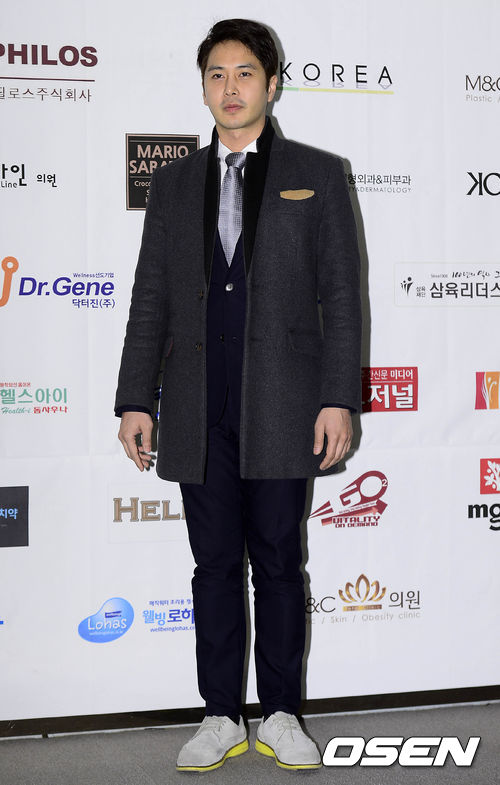 배우 김정욱이 포토월에서 포즈를 취하고 있다.