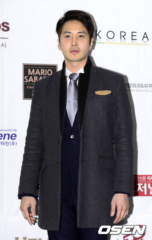 배우 김정욱이 포토월에서 포즈를 취하고 있다.