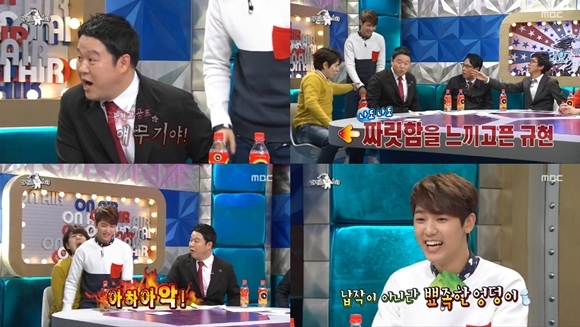 이어 강민혁은 직접 김구라와 규현의 무릎에 앉았고, 김구라는 깜짝 놀라며 "납작이 아니라 찔리는 수준이이다. 가끔 내 등에 앉아줬으면 좋겠다"라고 말해 웃음을 자아냈다.