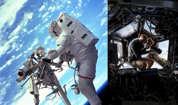 첫번째 사진에는 우주비행사 스티븐 스미스가 1999년도에 허블망원경을 수리하는 모습이 담고 있다. 또 다른 사진에는 우주비행사 크리스 카시디가 SNS에 사진을 올리기 위해 정거장 안에서 사진을 찍고 있다.