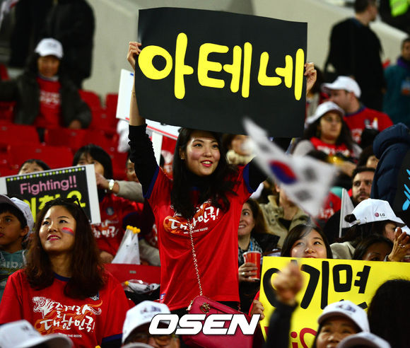 한국 응원단이 열띤 응원을 펼치고 있다./ ajyoung@osen.co.kr