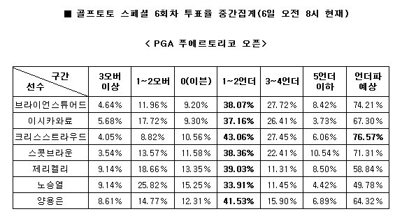 PGA 푸에르토리코 오픈 1라운드 대상 스페셜 6회차 중간집계 결과