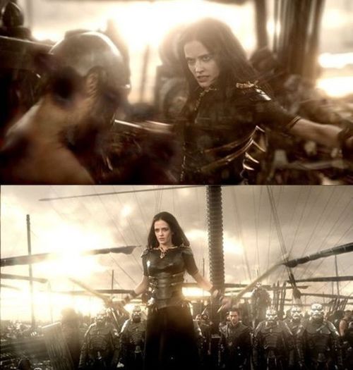 에바 그린이 분한 아르테미시아는 테미스토클레스 장군이 이끄는 그리스 해군에 맞서는 여전사로 섬뜩한 아름다움을 지닌 인물. 실존 인물에서 따온 캐릭터다. 영화에서 묘사된 것과는 물론 다르지만 당시의 여성 지휘관이라는 흔치 않은 위치가 영화적 소재로 더할 나위 없이 매력적이었던 것 같다.