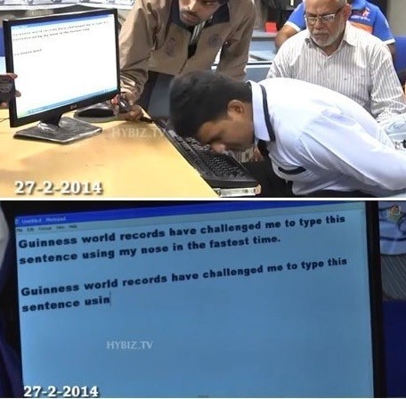 손가락 대신 코로 키보드를 친다? 엄연히 ‘기네스북’에 등재되어 있는 종목인 가운데 이 기록이 경신된 것으로 알려져 누리꾼들의 큰 관심을 모으고 있다.