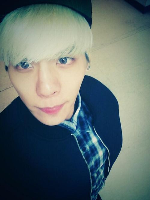 보이그룹 샤이니의 종현이 노란 머리에 파란 눈으로 신비로운 느낌을 물씬 풍기고 있다.