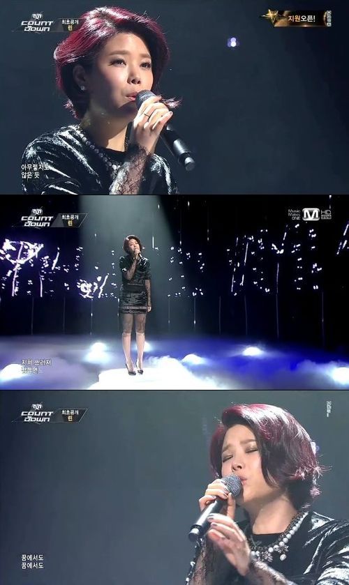 린은 6일 오후 6시 생방송된 엠넷 '엠카운트다운'에서 곡 '보고싶어 운다'를 열창, 상처받은 여자의 마음을 고스란히 표현했다.