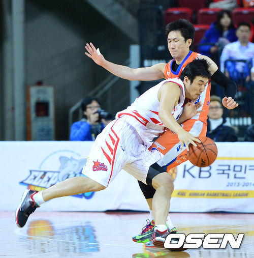1쿼터, 오리온스 김동욱이 전자랜드 정영삼의 수비를 피해 돌파를 시도하고 있다.