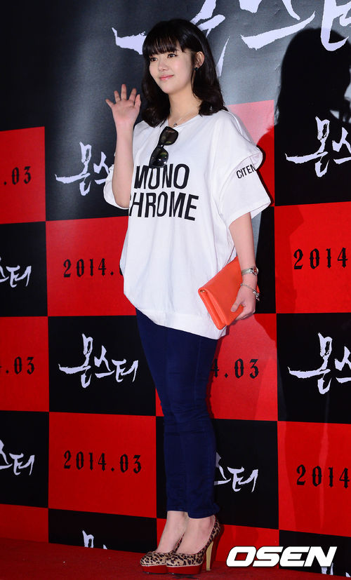 6일 오후 서울 광진구 롯데시네마 건대입구에서 열린 영화 '몬스터' VIP 시사회에서 레인보우 정윤혜가 포토타임을 갖고 있다.