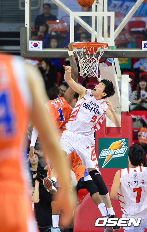 3쿼터, 전자랜드 로드의 덩크 시도를 오리온스 최진수가 막아내고 있다.