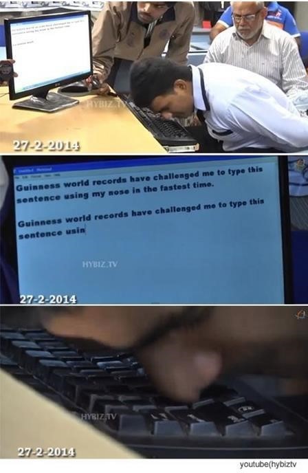 최근 온라인 커뮤니티에서 '코 타이핑 세계 기록'이라는 영상이 화제다. '코 타이핑 세계 기록' 영상에서는 코로 타자를 쳐서 세계신기록을 세운 사람의 모습이 담겨 있다.