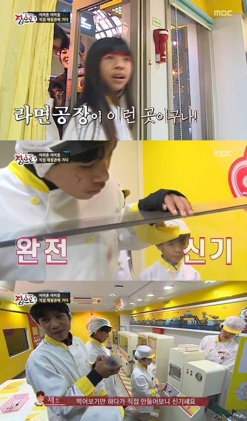 가장 먼저 실제 라면공장을 축소한 곳에서 라면만들기 체험에 나선 아이들. 이에 눈을 반짝이던 제토는 “라면을 먹어보기만 하다가 직접 만들어보니 신기하다”라며 열심히 라면을 만들어 미소를 자아냈다.