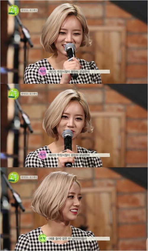 혜리는 지난 6일 방송된 MBC뮤직 ‘피크닉 라이브 소리풍경(소풍)’에서 다른 멤버들이 혜리가 잠실 여신이었다고 말한다고 운을 떼자 “우리 반에서 반 이상의 남자들이 날 좋아했다”고 털어놨다.