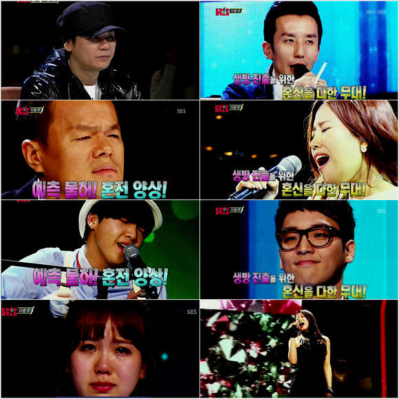 SBS '서바이벌 오디션 K팝 스타 시즌3'(이하 K팝 스타3)는 지난 15회 분에서 최강자들이 한데 모인 ‘죽음의 A조’ 경연을 담아낸 상황. 권진아, ‘짜리몽땅(여인혜-박나진-류태경)’, ‘Almeng(최린-이해용)’이 각 1-2-3위를 차지하며 TOP8에 직행하고, 버나드 박과 샘김이 탈락 후보로 뽑히는 ‘전율의 반전극’이 시청자들을 경악시켰던 바 있다.