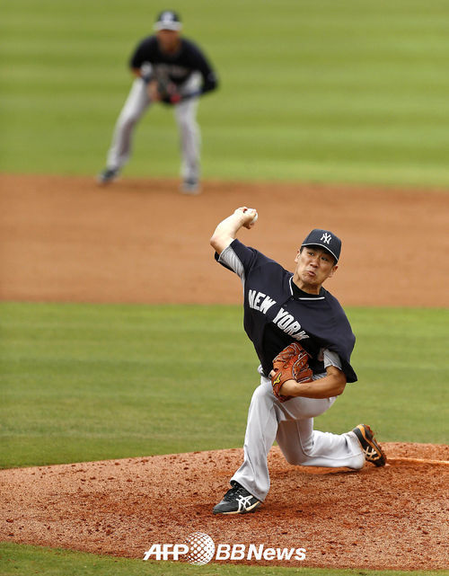 하지만 다나카는 후속 프랜드슨을 2루 땅볼로 솎아내며 흔들리지 않았다. 총 투구 수는 41개, 최고 구속은 94마일(151km)이었다. 땅볼 아웃을 7개나 유도하며 효율적인 피칭을 펼쳤다. 다나카의 시범경기 평균자책점은 1.80이다./< 사진 > ⓒAFPBBNews = News1