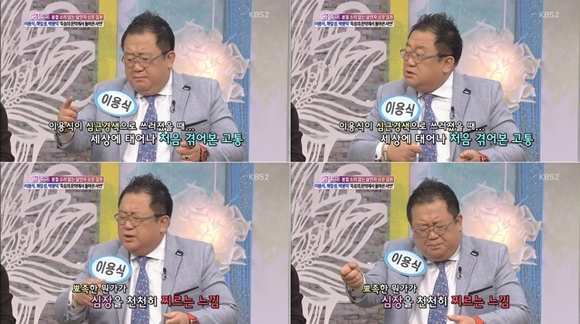 이용식은 "심장을 천천히 찌르는 느낌이었다. 지금까지 경험해보지 못한 고통이었다"고 덧붙이며 힘들었던 당시 상황을 설명했다.